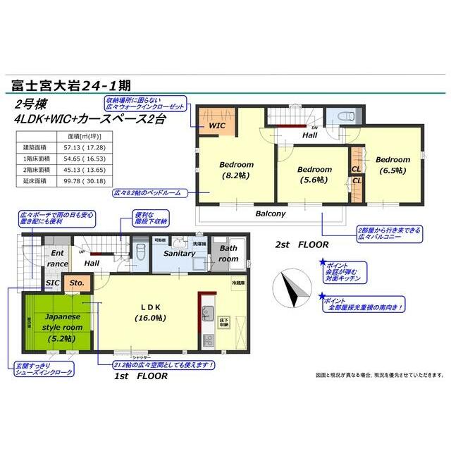 建物面積 | 99.78㎡ | 土地面積 | 実測 165.27㎡ |